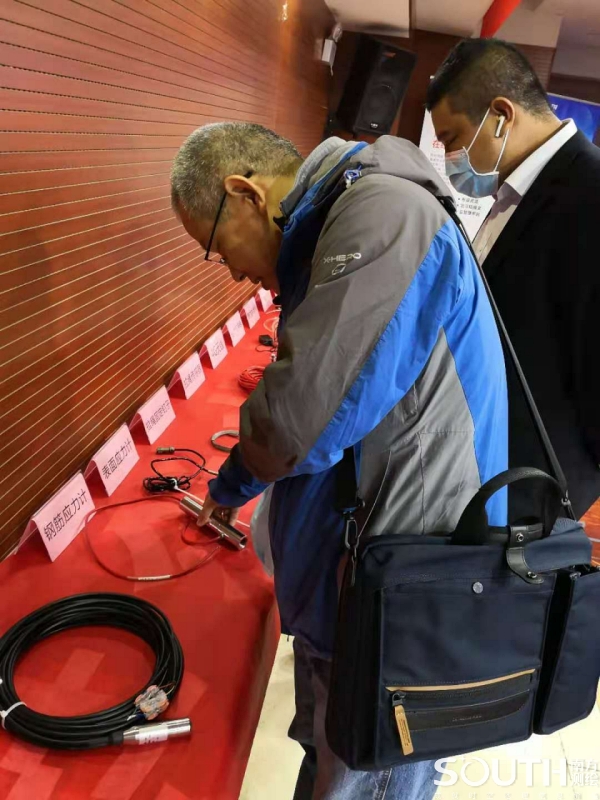 南方測繪技術(shù)人員為現(xiàn)場客戶介紹監(jiān)測設(shè)備