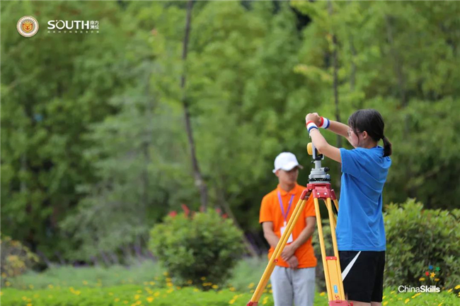 嘹亮的吶喊聲停,口哨聲一響,參賽的選手們手提設(shè)備快步向前,隨即一系列測量操作有條不紊地開展。這是全國高職技能大賽工程測量賽項的比賽現(xiàn)場。