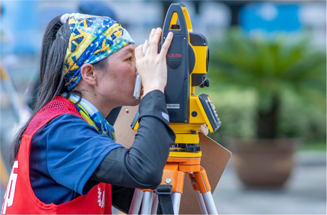 根據(jù)賽程安排,8月22日~23日兩天的比賽均在上午8:00開始。全副武裝的參賽選手們手持測量設備,齊聚在路線起點處,在裁判的一聲哨響后迅速行動,各司其職:負責測量的選手一次次架站、讀數(shù)據(jù)、記錄,聚精會神,一絲不茍;負責觀測點的選手一次次調(diào)平、保持氣泡居中,屏氣凝神,堅如磐石。