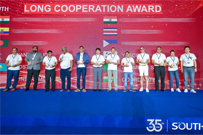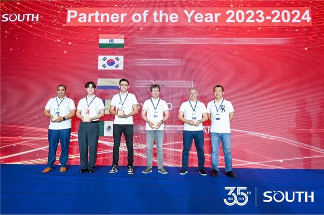 南方測(cè)繪自2003年跨出國(guó)門(mén),步入國(guó)際市場(chǎng)已有20余年。來(lái)到現(xiàn)場(chǎng)的合作伙伴分別來(lái)自34個(gè)國(guó)家或地區(qū),合作時(shí)間從數(shù)年到二十余年不等。覆蓋范圍之廣、時(shí)間跨度之久都足以證明南方測(cè)繪國(guó)際市場(chǎng)的扎實(shí)與深厚。頒獎(jiǎng)典禮現(xiàn)場(chǎng)頒發(fā)了“長(zhǎng)期合作獎(jiǎng)”“年度伙伴獎(jiǎng)”“GEO先鋒獎(jiǎng)”“最具專(zhuān)業(yè)價(jià)值成員獎(jiǎng)”等獎(jiǎng)項(xiàng)。