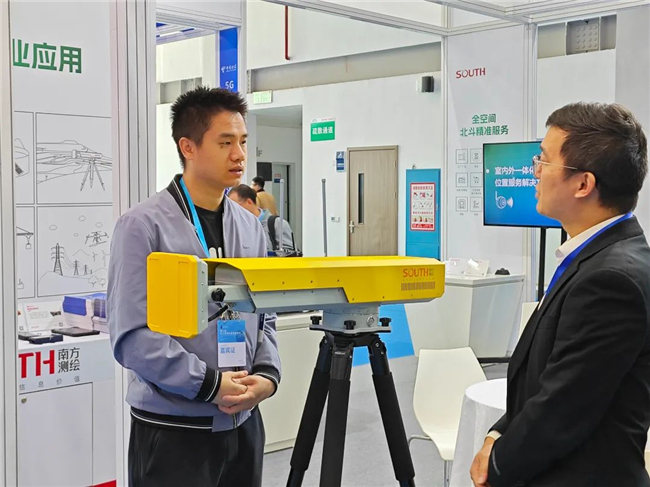 展區(qū)里,南方測繪技術(shù)工程師結(jié)合產(chǎn)品和項目案例,為參觀嘉賓們講解了室內(nèi)外定位整體解決方案,基于室內(nèi)北斗及室內(nèi)音頻融合高精度定位手段,提供更精準(zhǔn)的人員車輛位置獲取和服務(wù)能力,為城市工程建設(shè)、市政設(shè)施運管服以及大眾出行導(dǎo)航應(yīng)用等場景提供更全面、更精準(zhǔn)的北斗高精度位置服務(wù)。